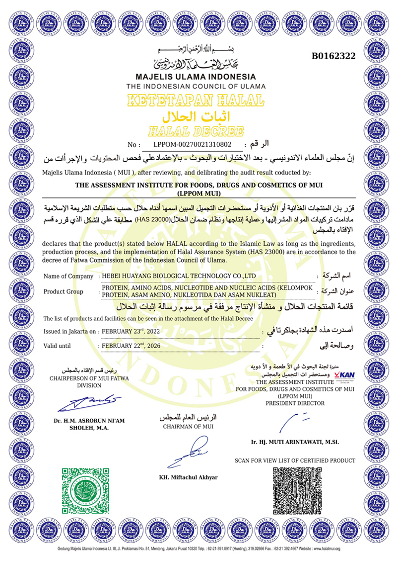河北華陽集團坐落于河北省衡水市冀州區(qū)省級工業(yè)園區(qū)(始建于1987年,前身為冀州市華陽化工有限責任公司)。集團下屬四個公司:河北華陽生物科技有限公司、河北華悅氨基酸科技有限公司、滄州華晨生物科技有限公司、衡水市陽力商貿(mào)有限公司。主要生產(chǎn)甘氨酸、L-丙氨酸、L-蘇氨酸、DL-蛋氨酸、L-賴氨酸鹽酸鹽、L-半胱氨酸鹽酸鹽、干貝素等氨基酸系列食品級產(chǎn)品,廣泛應(yīng)用于食品、飲料、飼料等行業(yè)。......